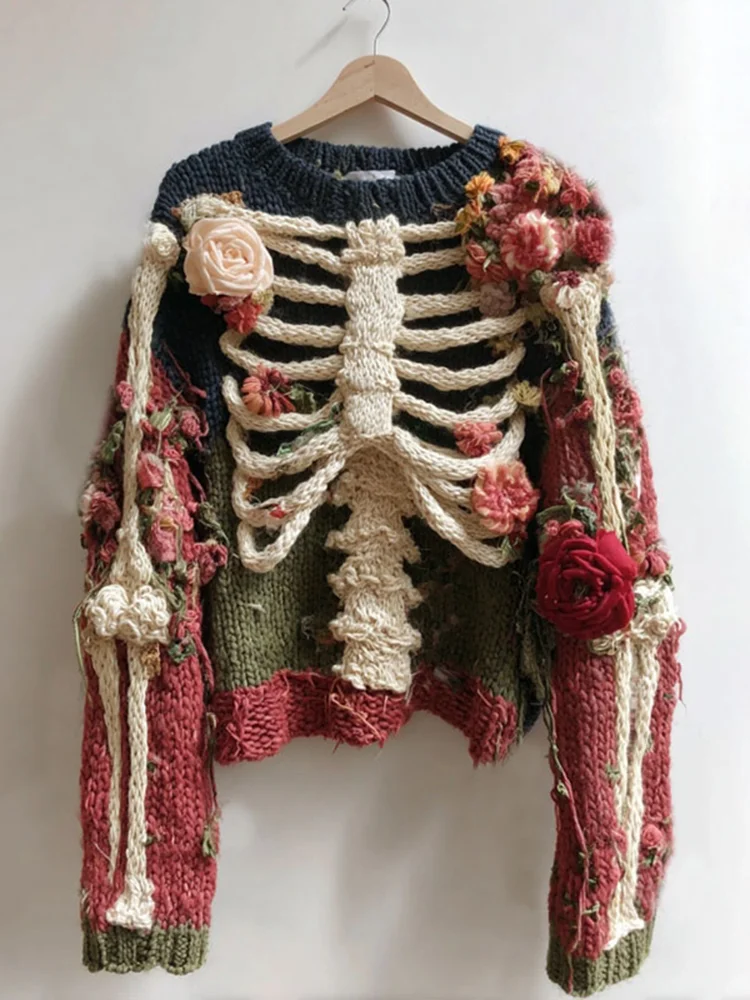 Women's Vintage Skeleton And Rose Art Cozy Sweater