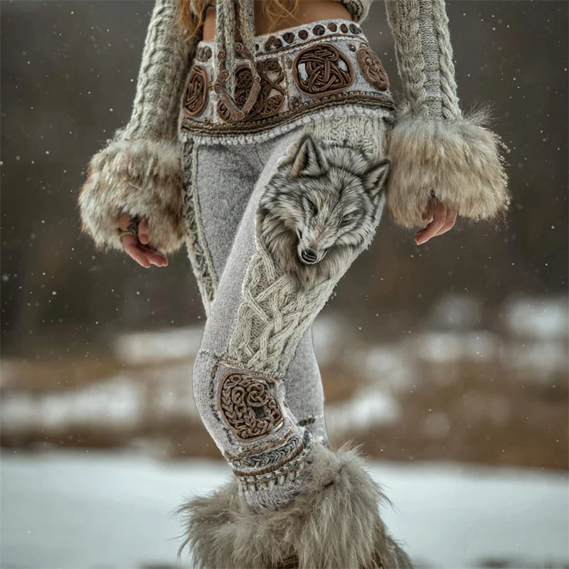 Fuzzy Wolf Viking Celt Knot Chunky Cozy Leggings