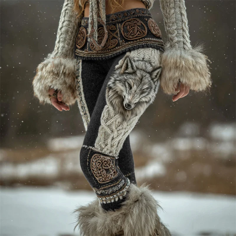 Fuzzy Wolf Viking Celt Knot Chunky Cozy Leggings