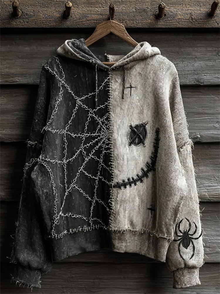 Halloween Spider Spooky Face Contrast Stitched Hoodie