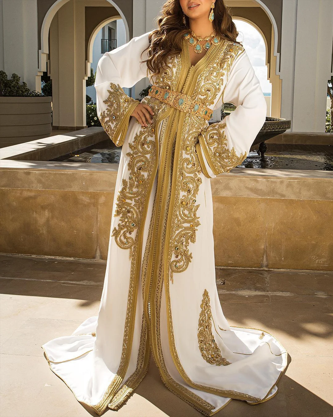 Women's V Neck Long Sleeve Embroidered Dress